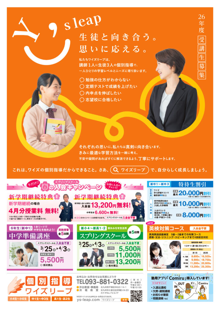 新学期ご入会★受付中です。 2026年4月6日 最終更新日時 : 2026年4月6日 ys_leap_office_master ※月途中からのご入会の場合、授業料は日割り計算となります。 web_ysleap2603ダウンロード